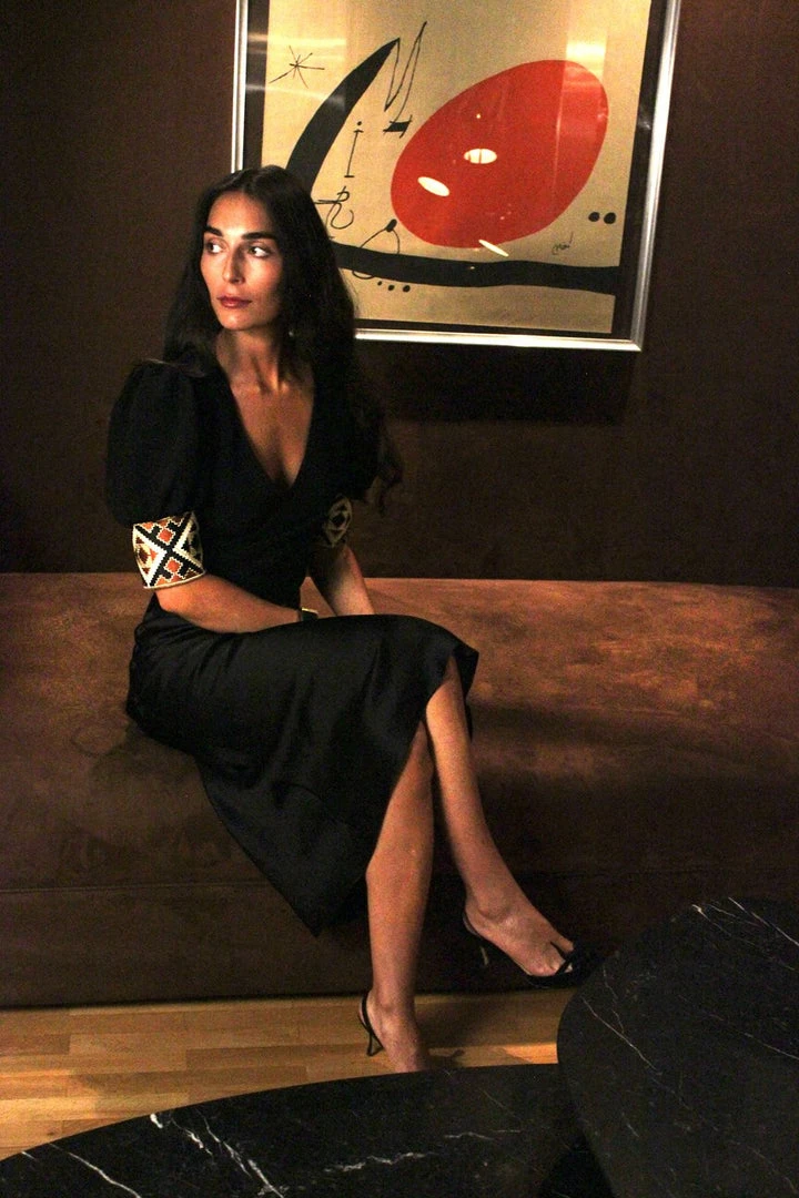 Our Slip Skirt or Balouch Embroidered Pant, or a ball skirt for a sophisticated Black tie look.Â