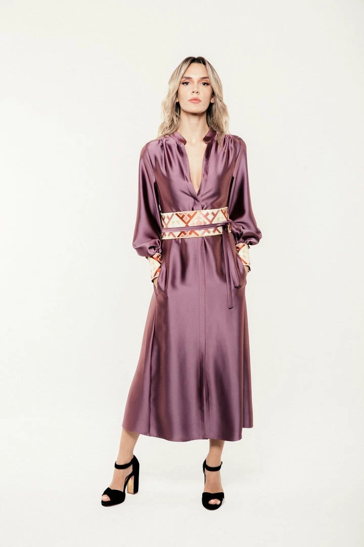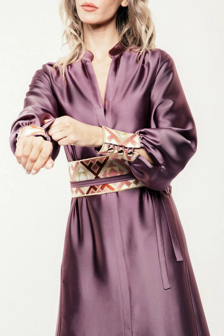 With an elegant midi length, signature bell sleeves, and slightly tapered at the waist, this Mauve belted dress is a must-have. The soft mauve color makes this a perfectly Romantic piece to wear for fancy luncheons or bridal showers – it also dresses up perfectly with gold strappy sandals!