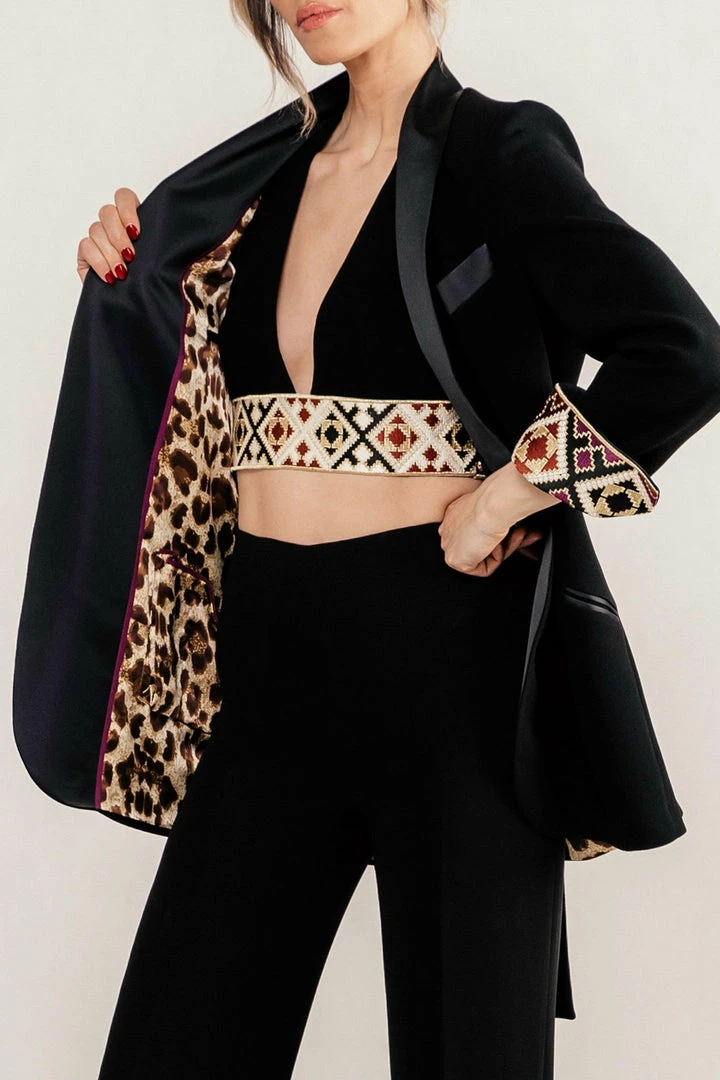 Our Shab Crepe Blazer or our Del Wrap Top.