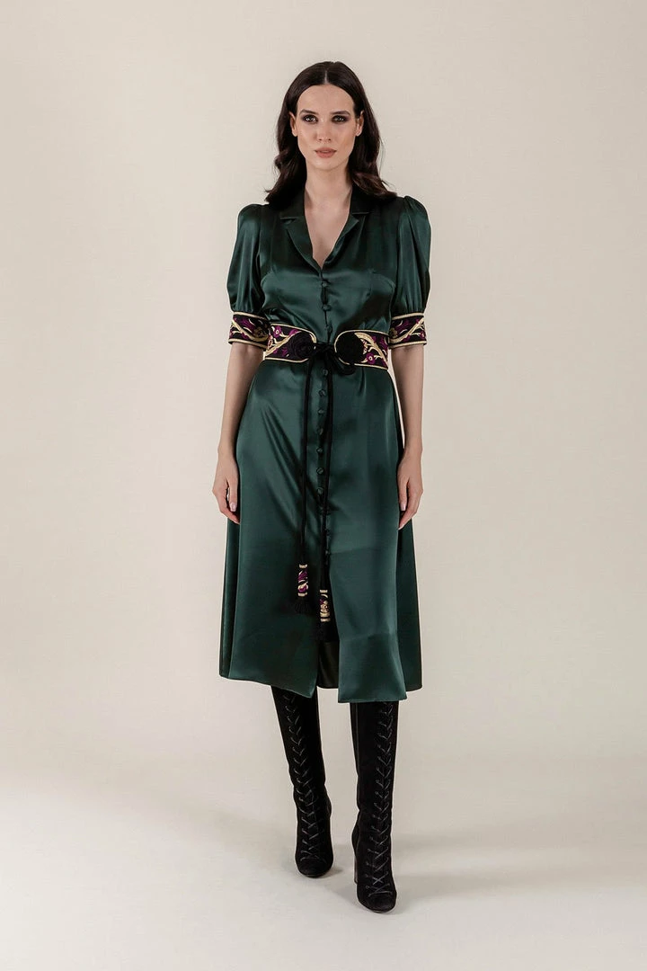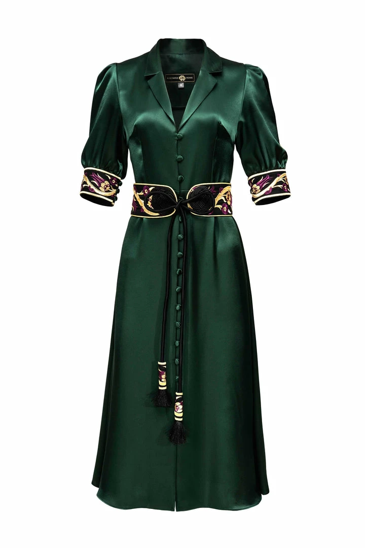 Meet our favorite Holiday Dress -a collaboration named after Noelle And Sabrina, our friends and co-founders of R.A.C, we revamped their best-selling signature silk dress for a fabulous new look. Featuring our new Laleh embroidery along the sleeves and the belt, this midi silk dress is your next go-to holiday part and dinner dress.