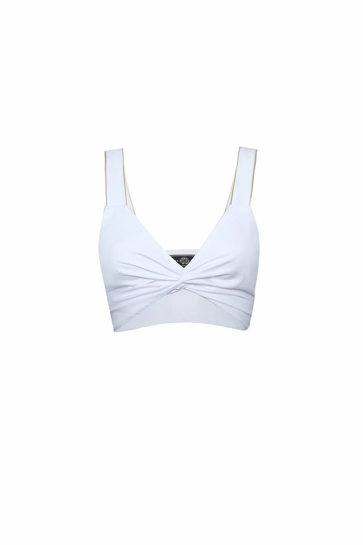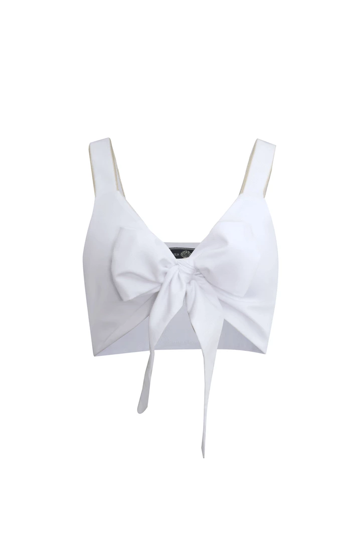 Featuring gold trim along the seams, tie it in the front, wrap around and play around with this versatile crop top. The Sara Top is an easy summer bandeau that can be mixed and matched with other neutrals for an easy and fun summer look!