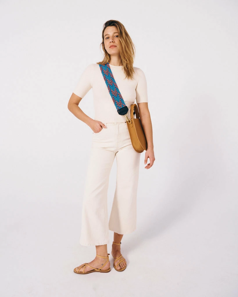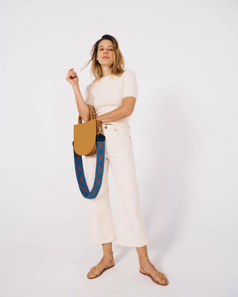 Hook your bag up with the Jack Strap — woven by Fair Trade Colombian Wayúu artisans in French Blue with cherry, navy, and cream accents and finished in buttery black leather. Our Classic Salt straps have a gorgeous textured look that set it apart from the crossbody straps of your past. What’s more is we give back with each strap sold through our partnership with Nest, a non-profit dedicated to the advancement of global artisans through transparency, sustainability and advocacy.