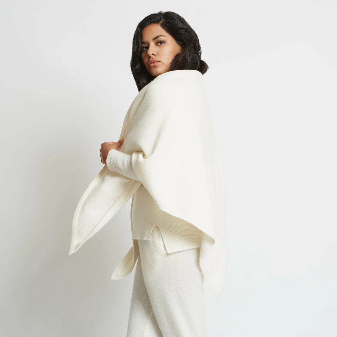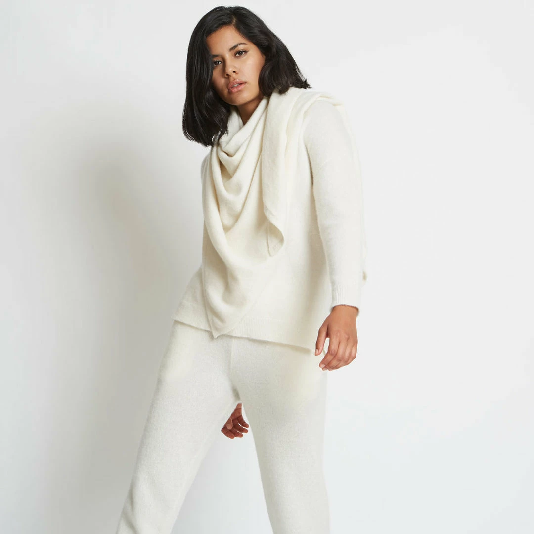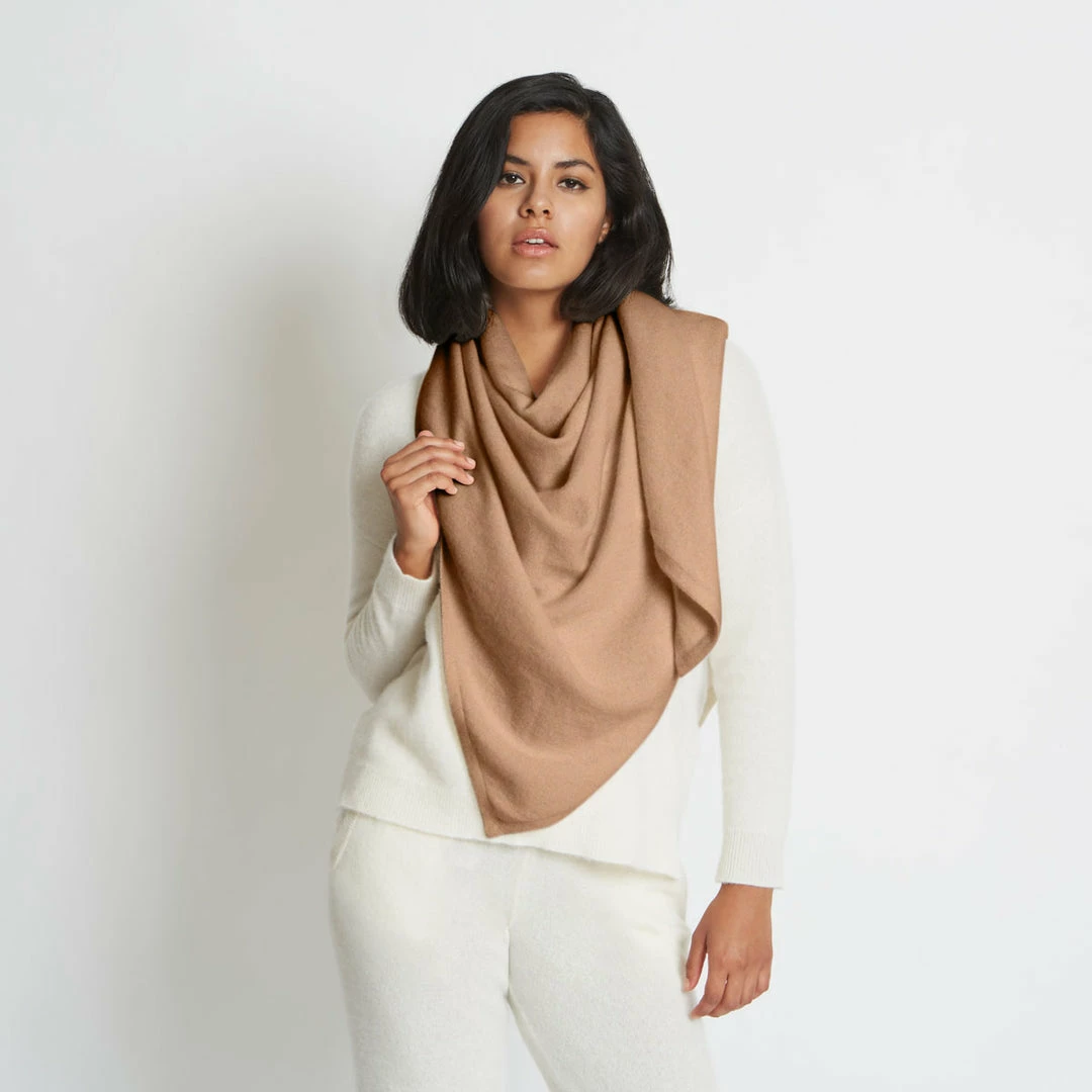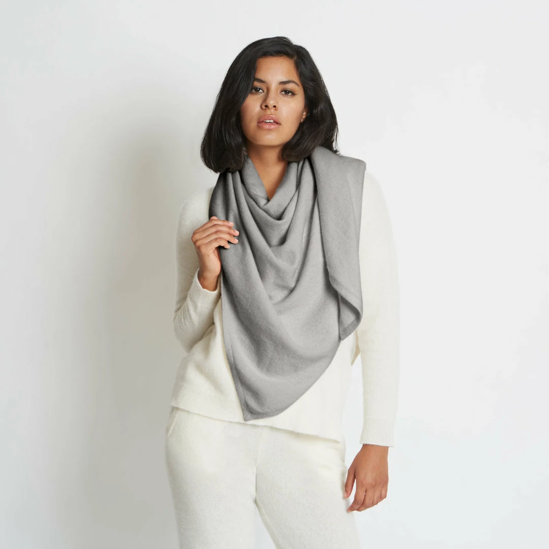 One of our signature pieces, the Anna triangle scarf is oversized, incredibly soft, and endlessly versatile. Made from certified 100% eco cashmere, the yarn is a blend of recycled and premium Mongolian cashmere. The end result is luxurious and entirely sustainable. Perfect for gifting, this piece comes beautifully wrapped in Santicler signature compostable packaging. Please note our model is 5’8″ (172 cm) tall. This item is offered in one size only. The scarf measures 70 inches (178 cm) long and 35 inches (89 cm) from base to tip. Content: 100% Italian Eco-Cashmere