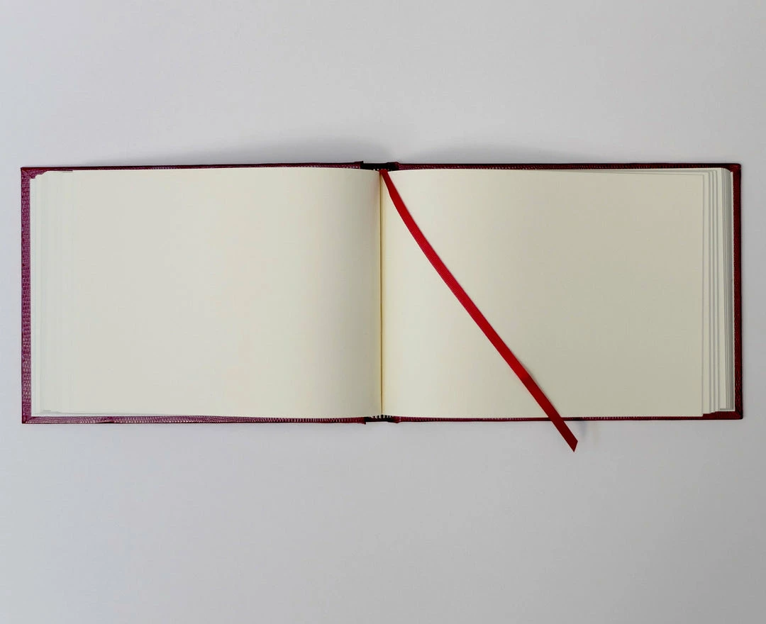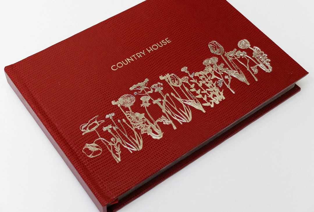 Our Guest Books are handmade in England by classically trained craftsmen. They are made from luxurious cream paper with gilt edges, covered in lizard embossed card.