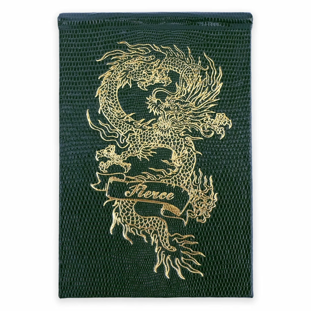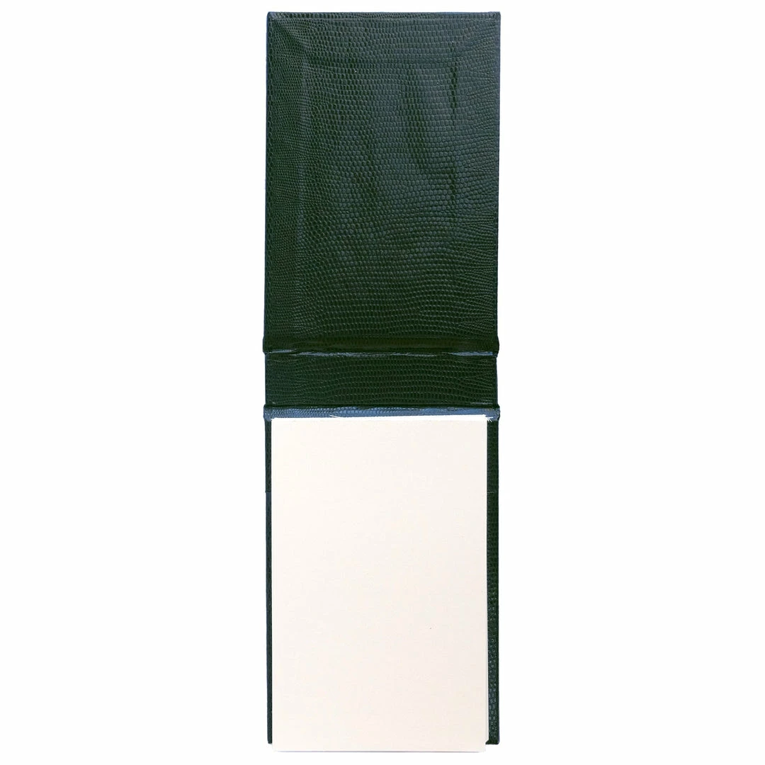 Covered in beautiful lizard embossed card with gold embossing, each notepad is handmade in England by classically trained craftsmen.