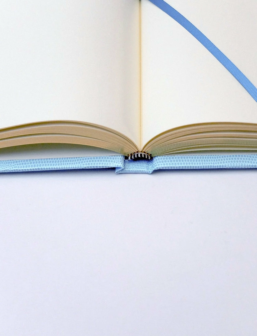 Our Wedding Collection is handmade in England by classically trained craftsmen.They are made from luxurious cream paper, covered in lizard embossed card and include a grosgrain ribbon to mark the page.