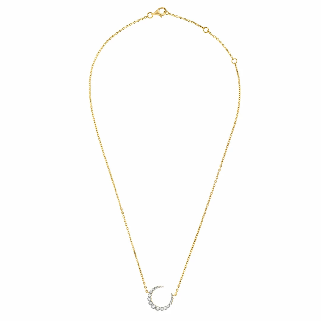 - Set in 22ct gold vermeil with white diamonds on an adjustable 16-18″ chain