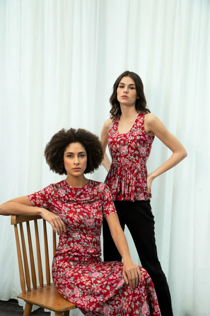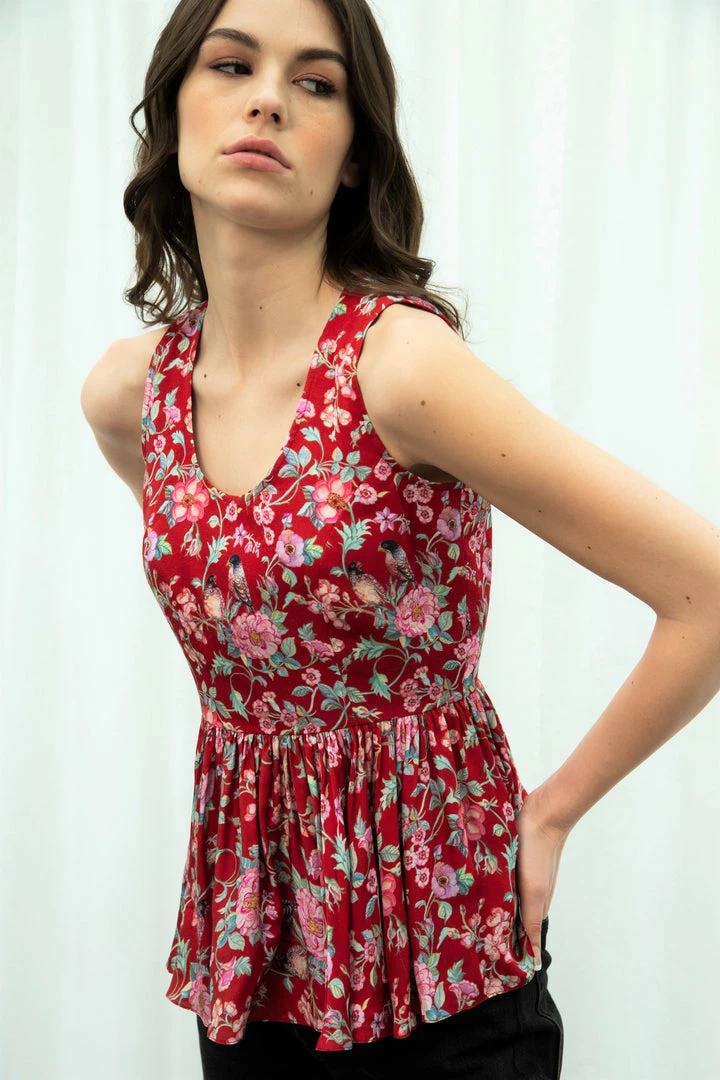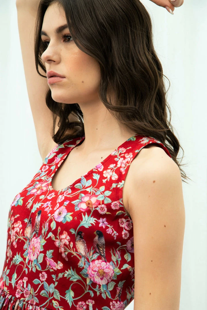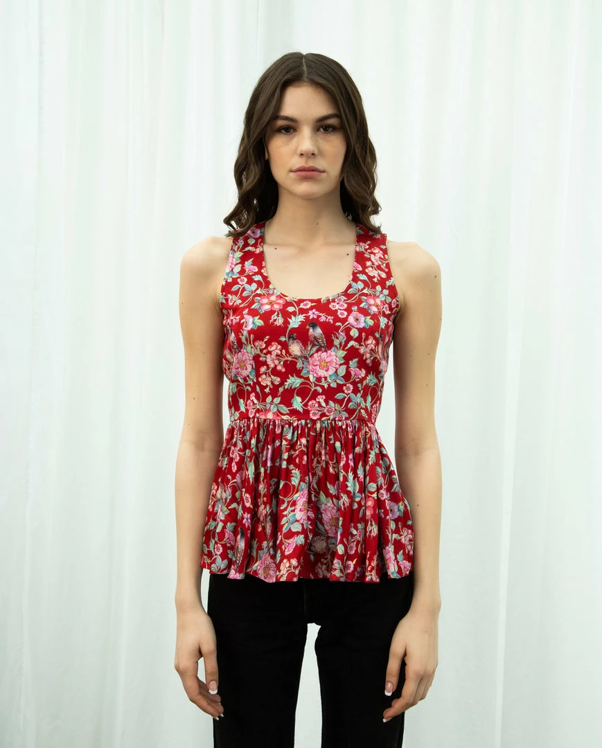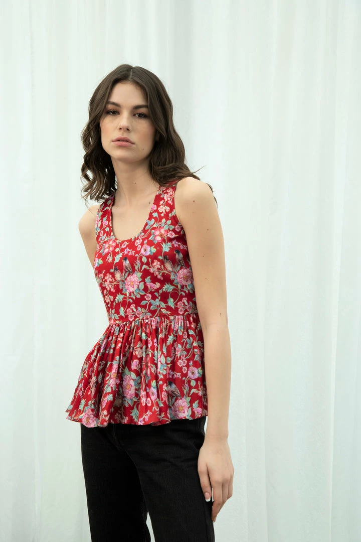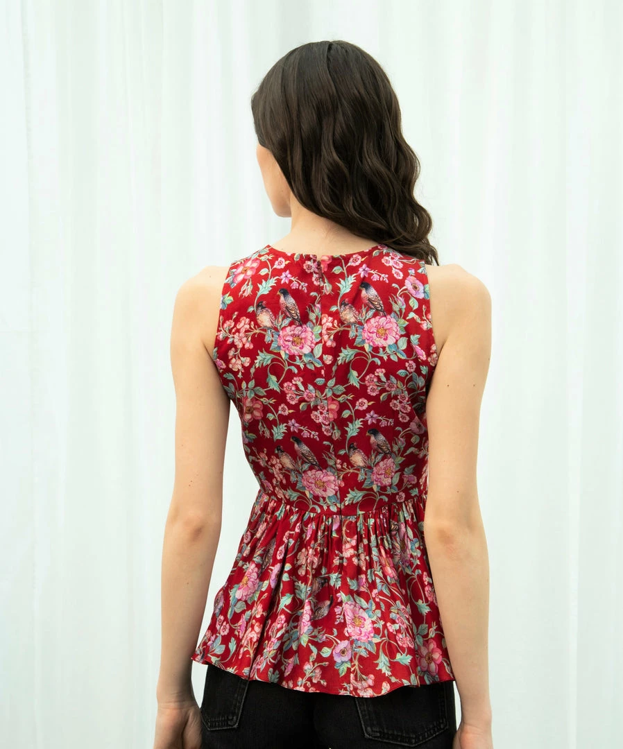 Sophisticated and stylish, this red love bird top features dreamy floral and jaal prints for a look that’s sure to earn you compliments. Translated on to contemporary silhouette with gathered details this satin top is bound to become the foundational piece of your warm-weather wardrobe.