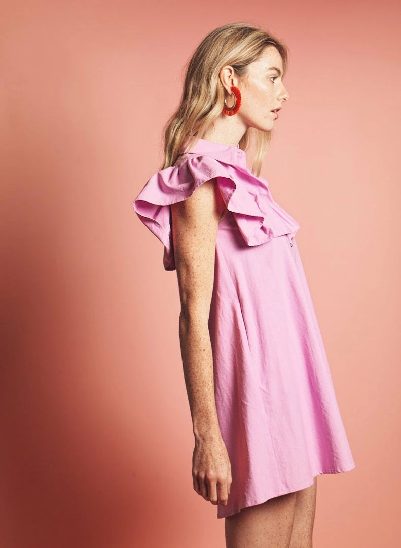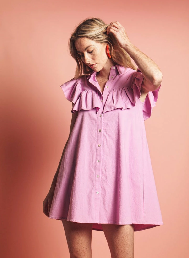 With an exaggerated ruffle across the shoulders, and a cute, swingy A-line shape, we are loving The Ayla with slides and sunnies for the season.
