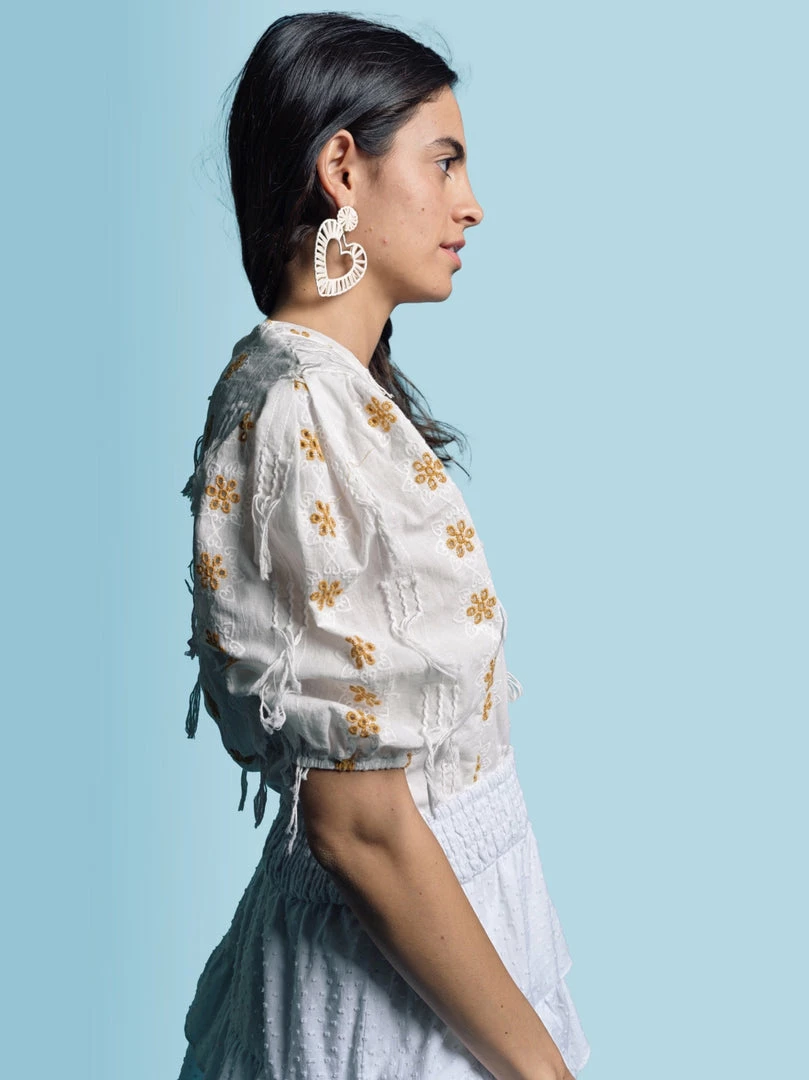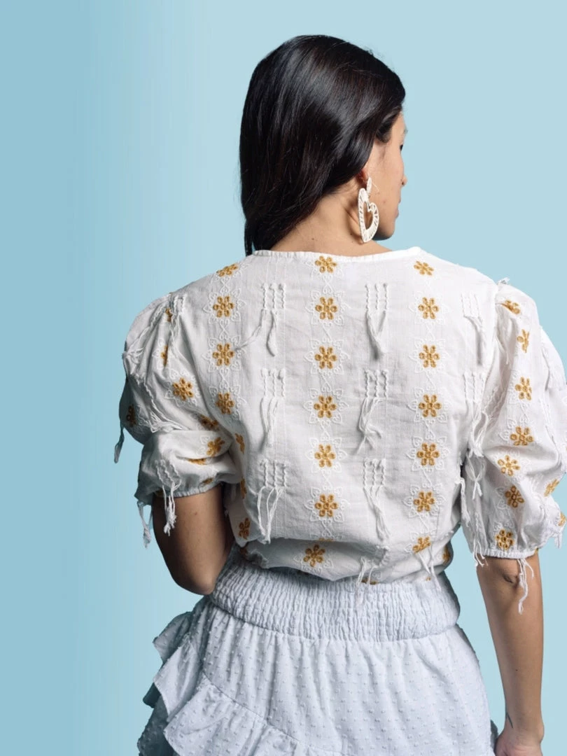 Slightly cropped for the perfect untuck and with a v neck, the Callie is in our super fresh white eyelet.