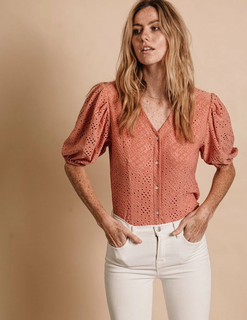 In soft cotton eyelet, the Callie Shirt is cute dressed up with our minis or dressed down with jeans.