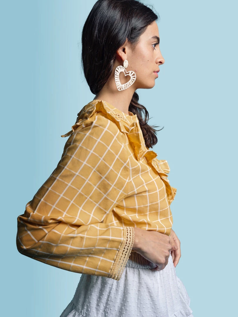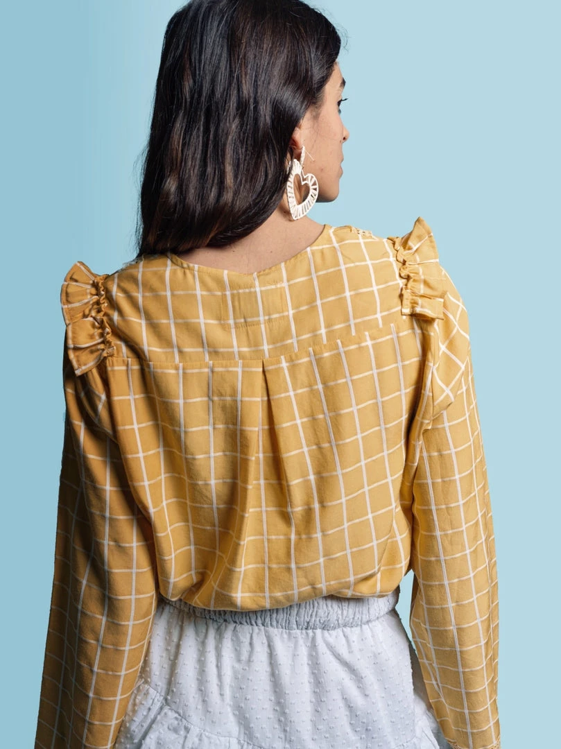You’ll love our Lindsay Shirt in yellow check year round. With dark jeans now and white jeans later.