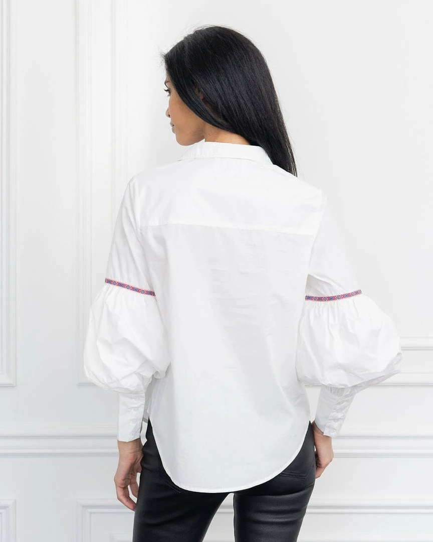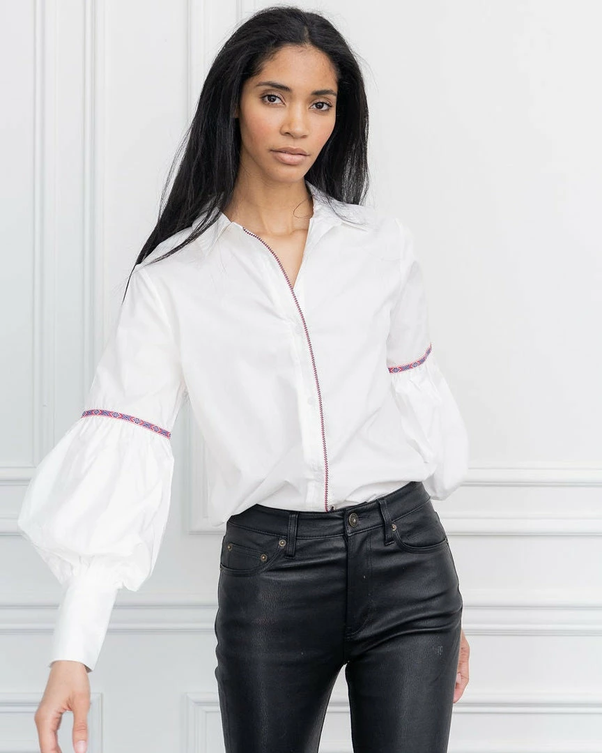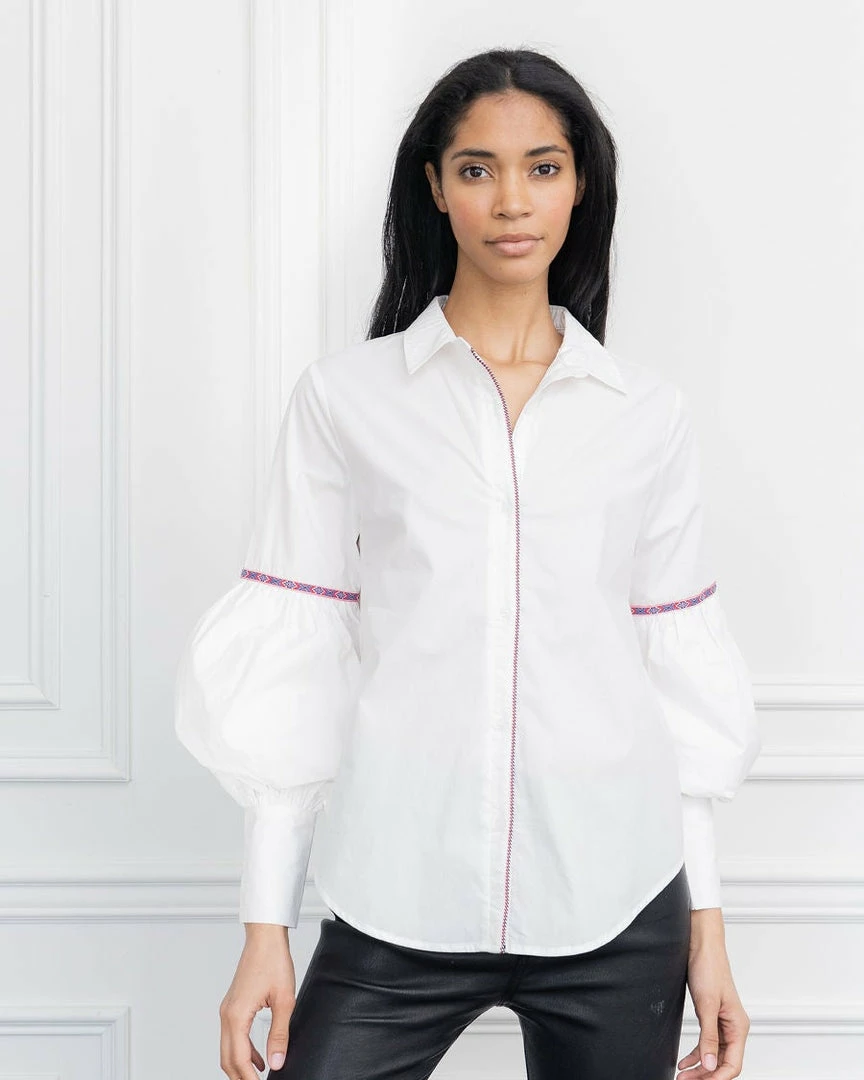 The shirt of the season and one of our buyers’ favorites. The perfect update to a classic button down. An extended slim cuff gives way to a blouson sleeve. Sophisticated, classic and crisp.