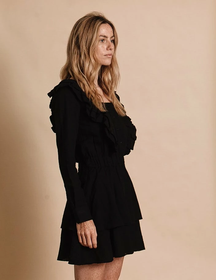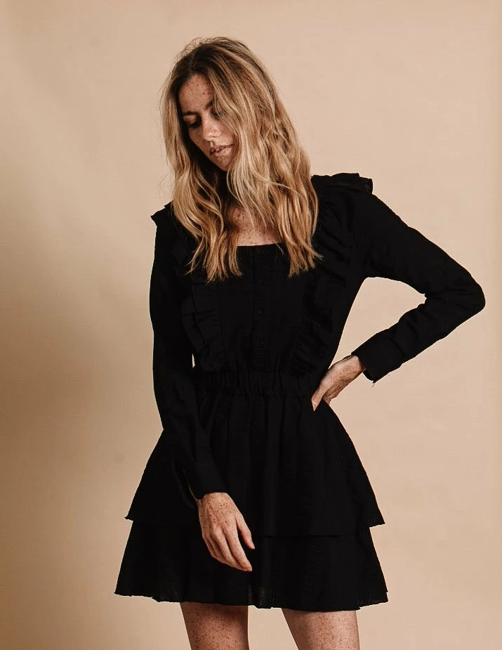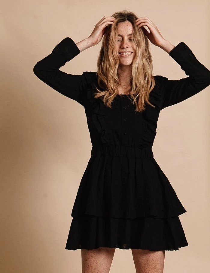 Subtle ruffles line the bodice of our popular Stella Dress. Finally a button down dress you can wear.Â