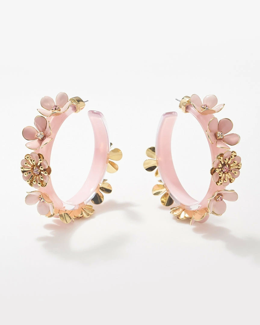 Our made-for-spring (and every other season) hoop earrings dotted with hand-enameled flowers and vintage rose crystals. Made from lightweight plant-based acetate and ethically-sourced gold. And—as if they weren’t cute enough—we finished each one with a heart-shaped postback.