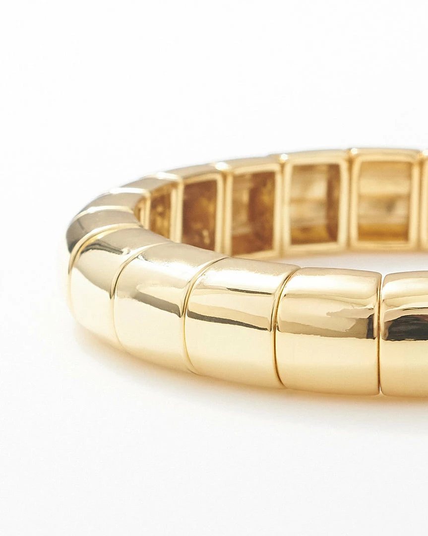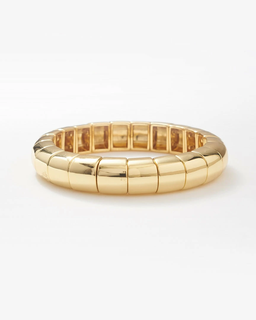 Stacks well with others. Our Remi slip-on bracelet fits comfortably on any size wrist and is finished with a luxuriously thick layer of ethically-sourced gold plating (we’re not shy). Wear all three colors together or create a custom look with pieces from your own collection.
