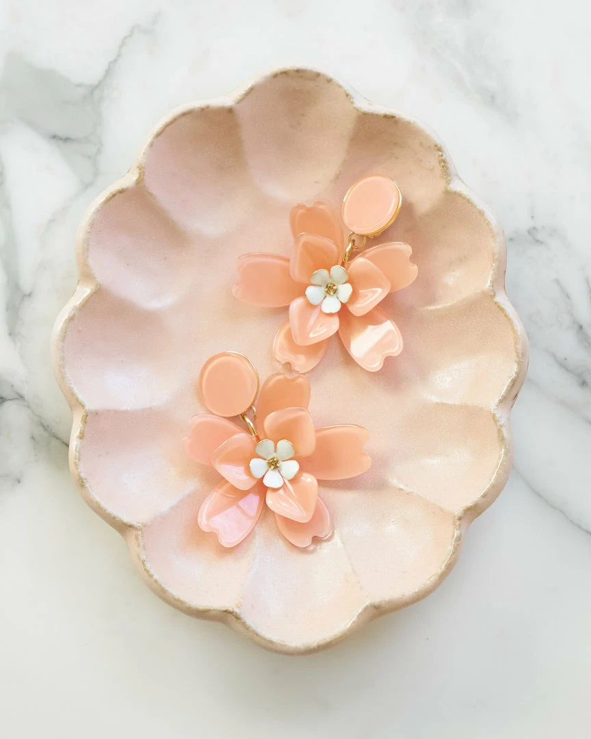 Like tucking a flower by your ear, except this one’s lasting forever. In a peachy spring-ready shade, each drop earring is hand-enameled for a dimensional look and finished with a comfy (not your mama’s) clip-back that offers a little extra support. Thoughtfully made using plant-based acetate and ethically-sourced gold plating.